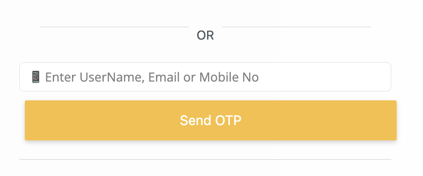 Users enter their email or mobile number on the login page, receive an OTP instantly, and use it to access their account securely.