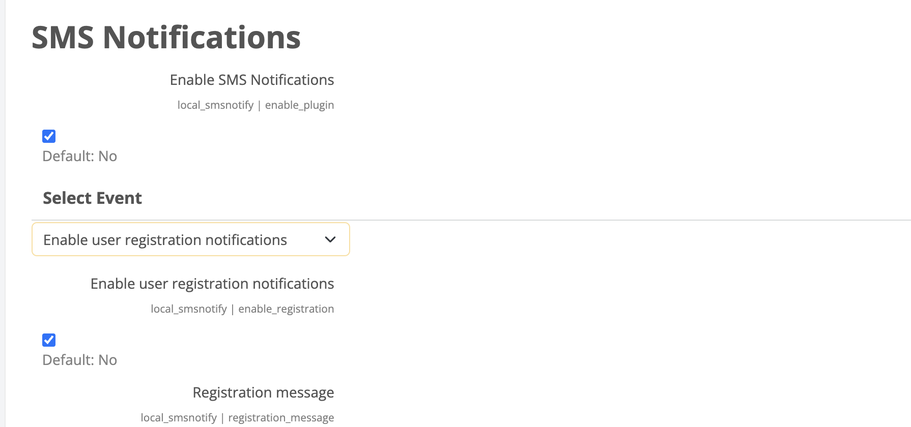 Only events enabled by the admin will trigger SMS alerts, ensuring notifications stay relevant and controlled.