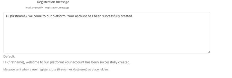 Predefined and Editable Messages: Each notification has a default/customisable SMS template