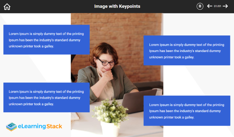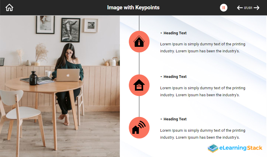 Set the course’s learning goals using a separate slide dedicated to learning objectives. Throw light on the point that your audience will learn in the session. It is a customizable slide. Add your text, and you are good to go.