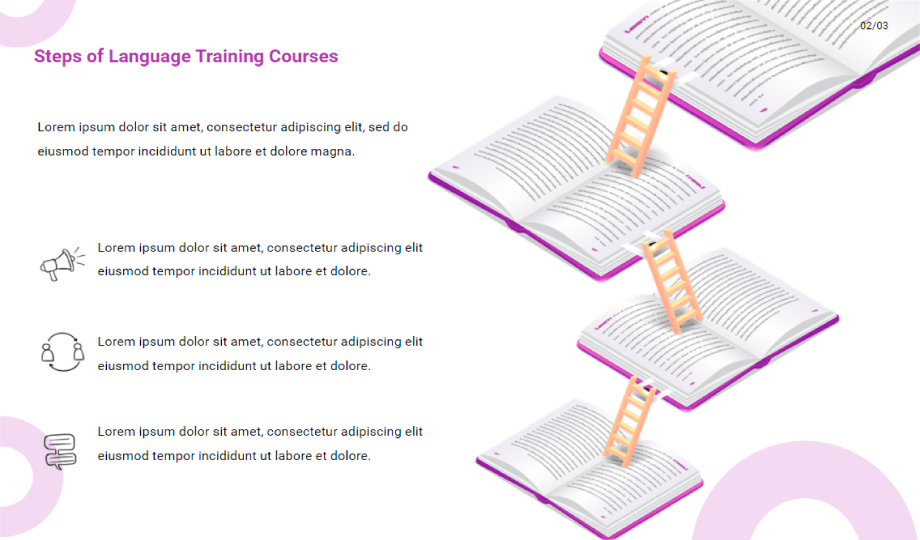 Language is what connects people with one another. You can now educate your employees commercial and native language to boost up career and business. The three sliders “Language Training” template will help you train your employees to communicate better with others.