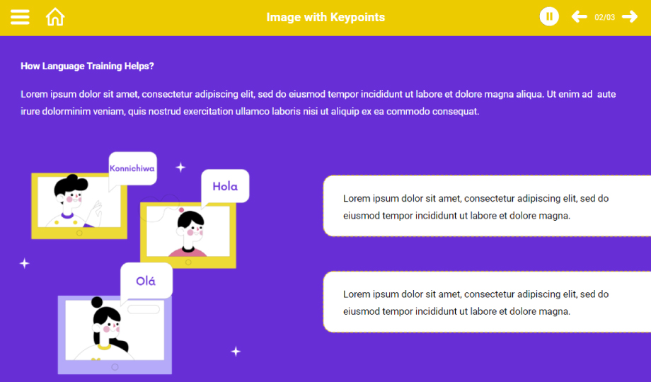 Language training: We bring you an innovatively designed language training course to show your audience the importance of learning foreign languages. Help your audience hone their learning language skills using these amazing e-templates. Use this course as a step-by-step guide to show the audience the benefits and usage in several ways. Download now!