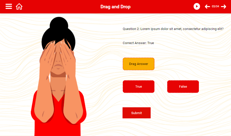 These slides contain single-choice, drag and drop questions to test the knowledge gained by your audience. Use these slides for finding their engagement rate and how much they have grasped the knowledge. The resulting slide can be used to see how much they have scored. They can take the quiz again.