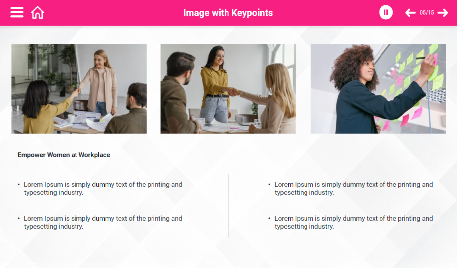 Layout the importance of women’s safety at the workplace using women’s empowerment e-learning templates. These slides comprise topics that emphasize bully and harassment prevention to make the workplace safer for women. All graphics are customizable.