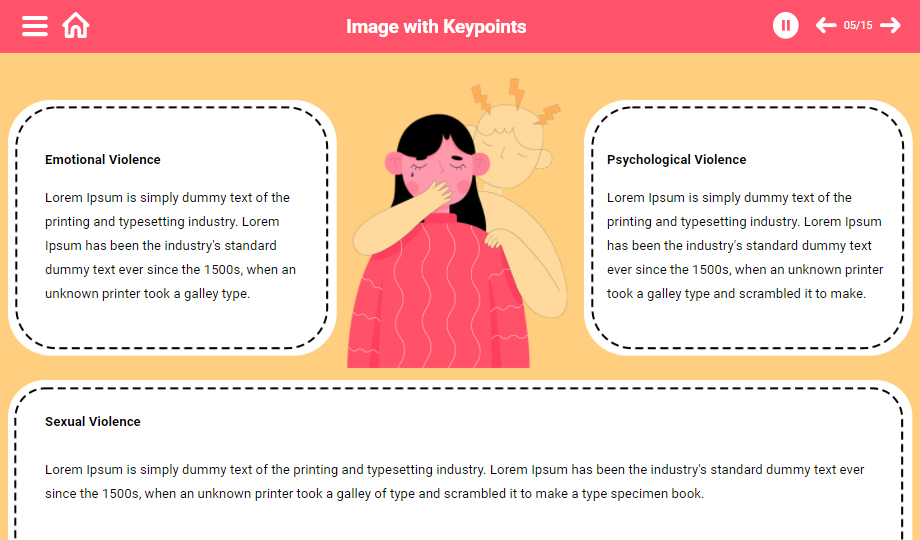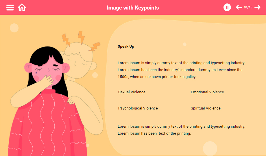 Highlight the ways that women face domestic abuse using domestic violence e-templates. Showcase the effect of mental and physical abuse on women with the help of visuals to make an impact on the audience. All the graphics are customizable. Download now!