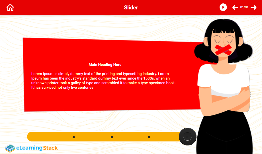 This slide contains a slider for adding a fun element to your e-course. Just getting bombarded with information can bore them. So, you can use this slider to let them engage in an activity where they need to slide to unfold the content. It contains a stunning and relevant graphic also.