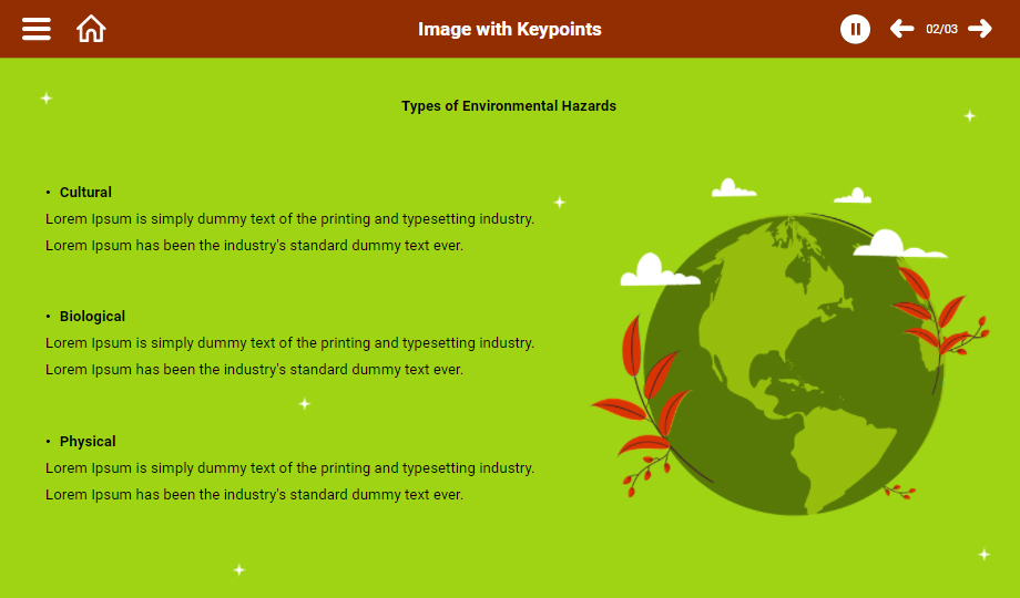 This pre-designed environmental health course highlights the essential factors in the environment that affect human health. Incorporate the professionally designed templates to impact the audience and help them monitor and mitigate points that undermine both environment and human health. Download now!
