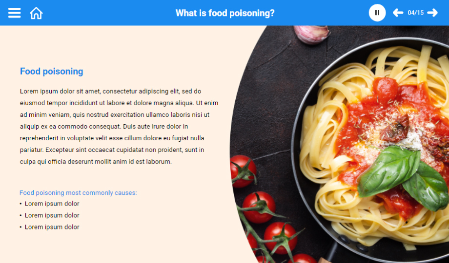Provide your audience with a food safety manual with these professionally designed articulate storyline templates. Showcase tips to prevent food poisoning and ways to keep the kitchen clean using these stunning customizable templates. Grab these slides now to create an engaging course on food safety.