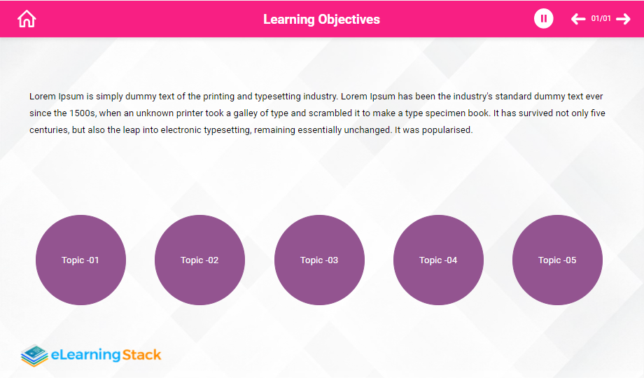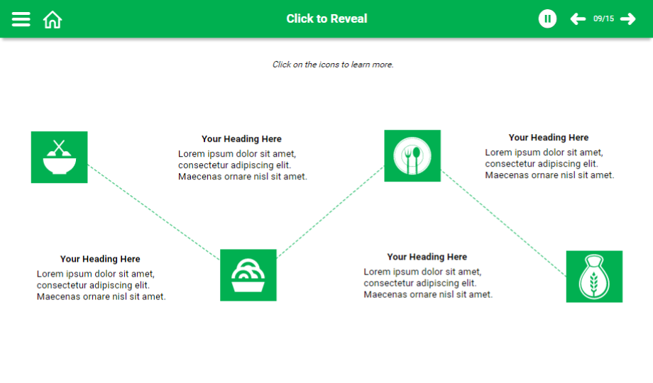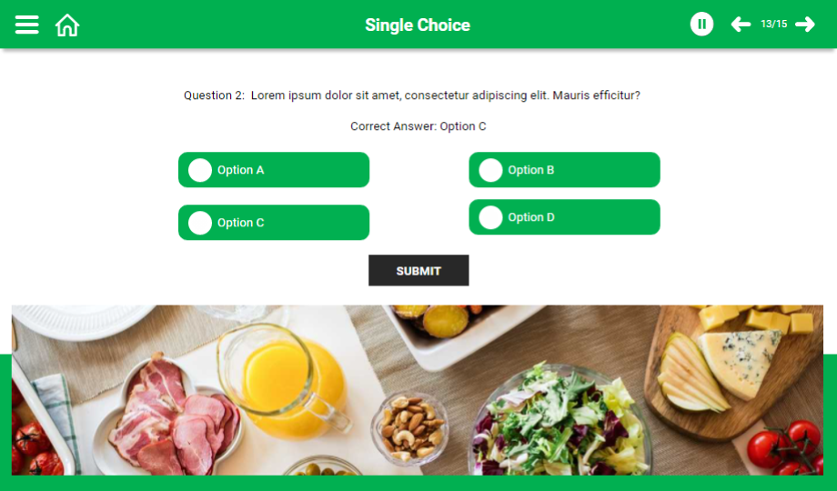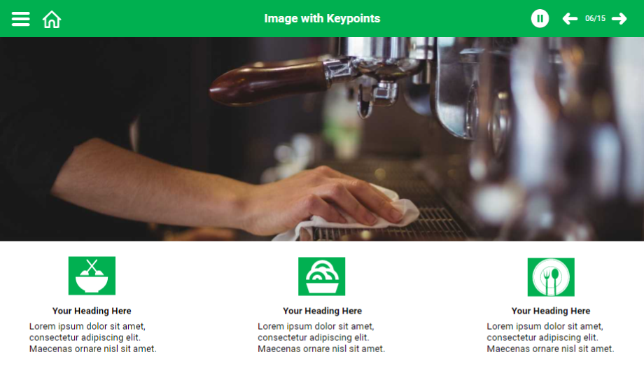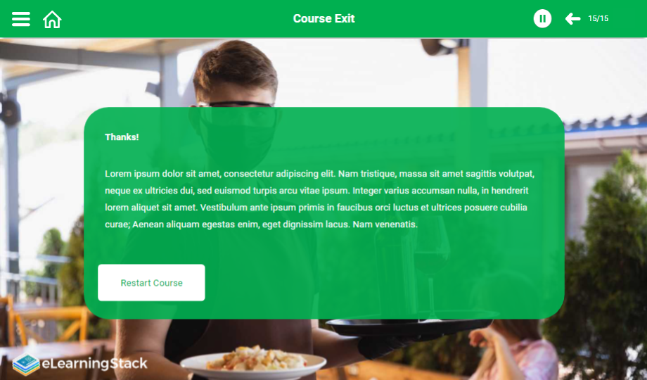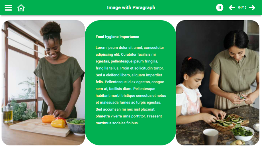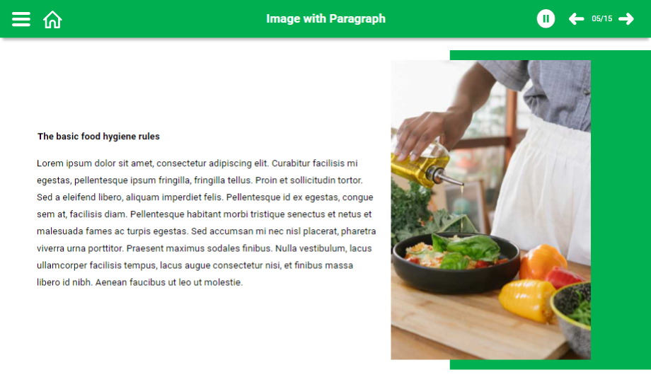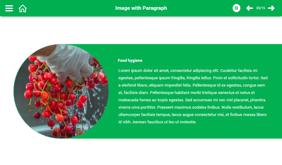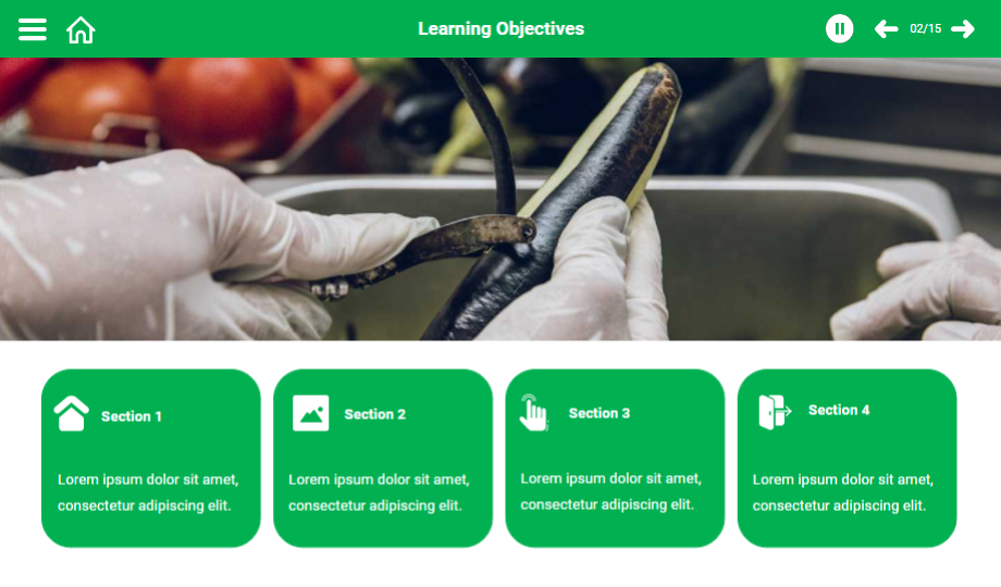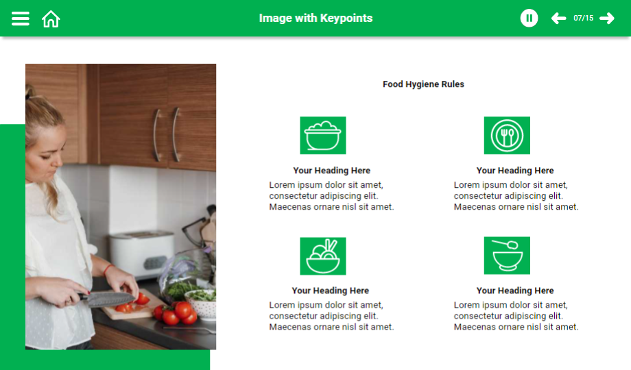 Help your audience understand the food hygiene rules using a content-ready food hygiene e-Learning course. This course comprises templates that showcase main points with graphics to grab the audience’s attention towards the course. The course is completely editable for your convenience.
