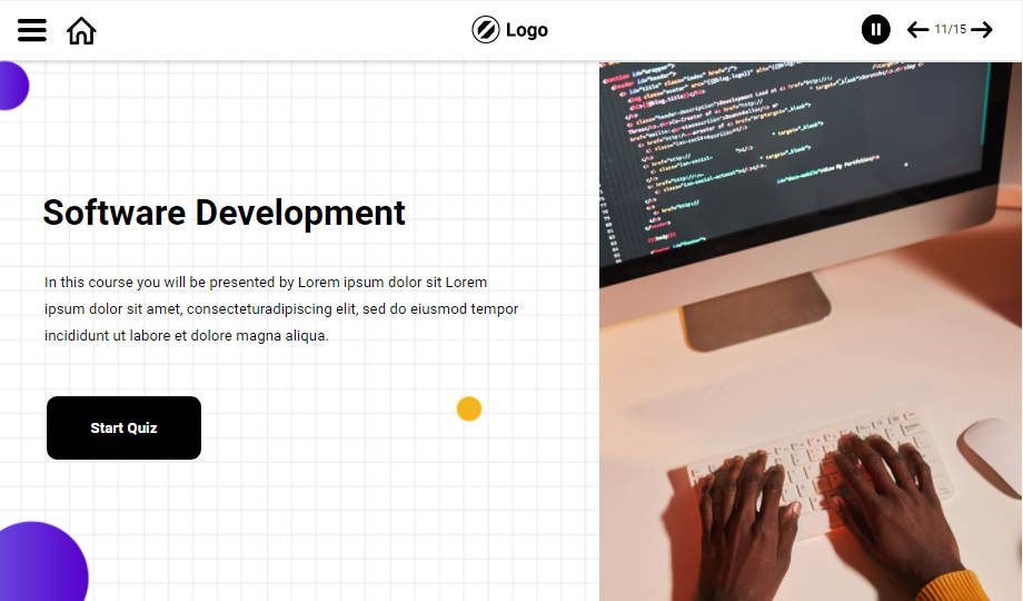 Use innovatively designed software development e-templates to present information about software development. Explain the process and its types in detail and use a quiz slide to help your audience understand the software development functions thoroughly. Download now!