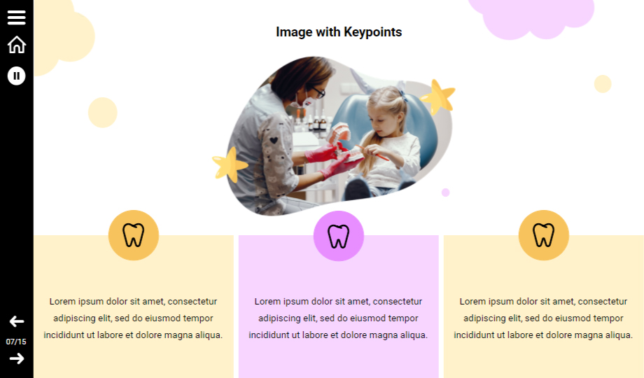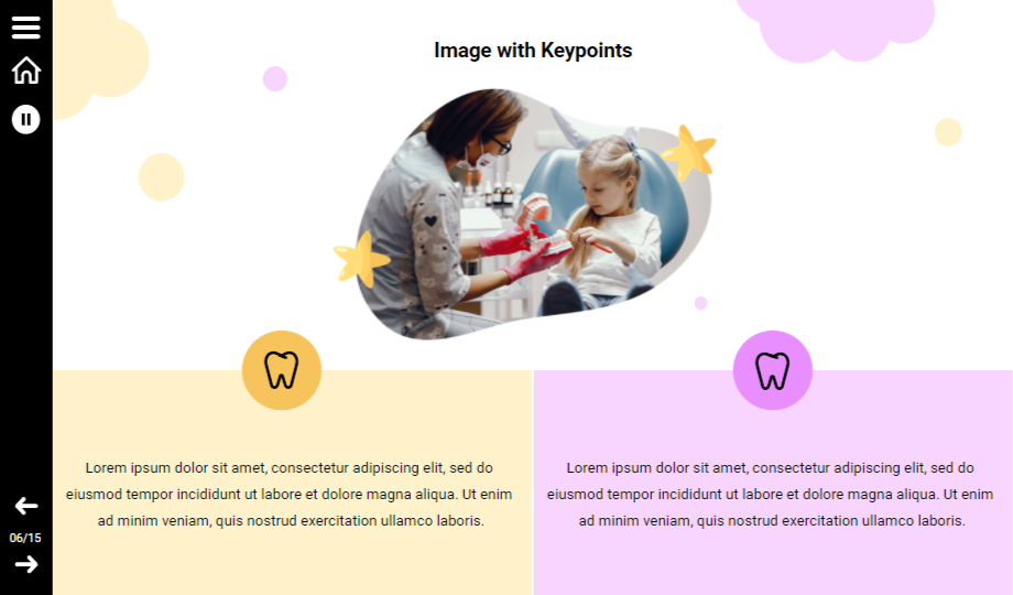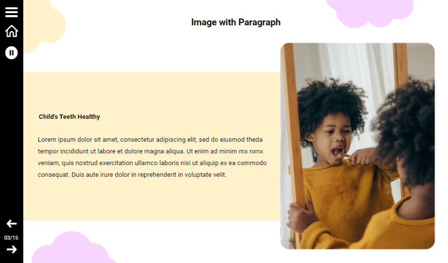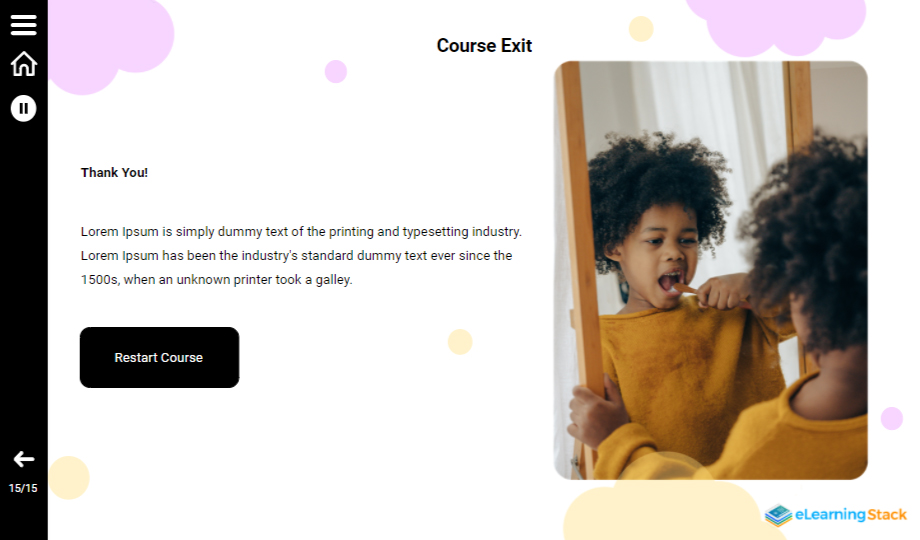 Use the content-ready child dental health e-Learning course to highlight the importance of child dental health. Help parents and children understand the right way to brush and foods to avoid. Help them find the best child dental health specialists using this e-Learning course. Download now!