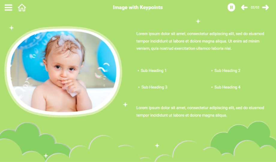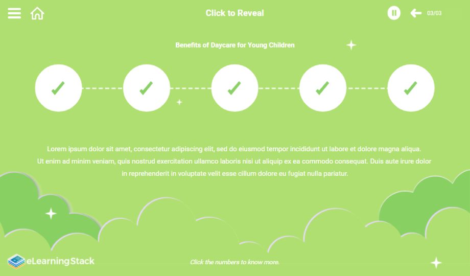 Working on spreading awareness or advertising business in childcare, here is a 3-slide template to cover topics like – early childhood and childcare and benefits of daycare for young children. The template is user-friendly and easily modifiable. The third slide is an interactive slide where the user has to click buttons to see the information. Each slide is filled with adorable infant pictures. Download and enchant your viewers today!