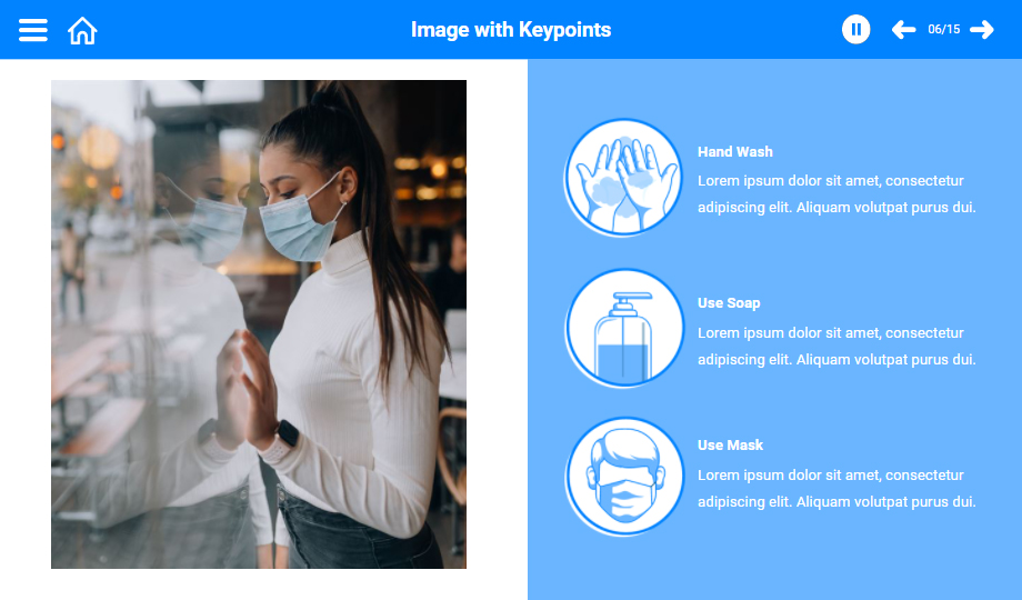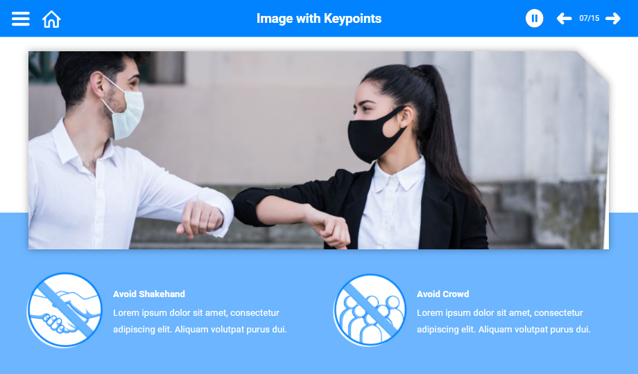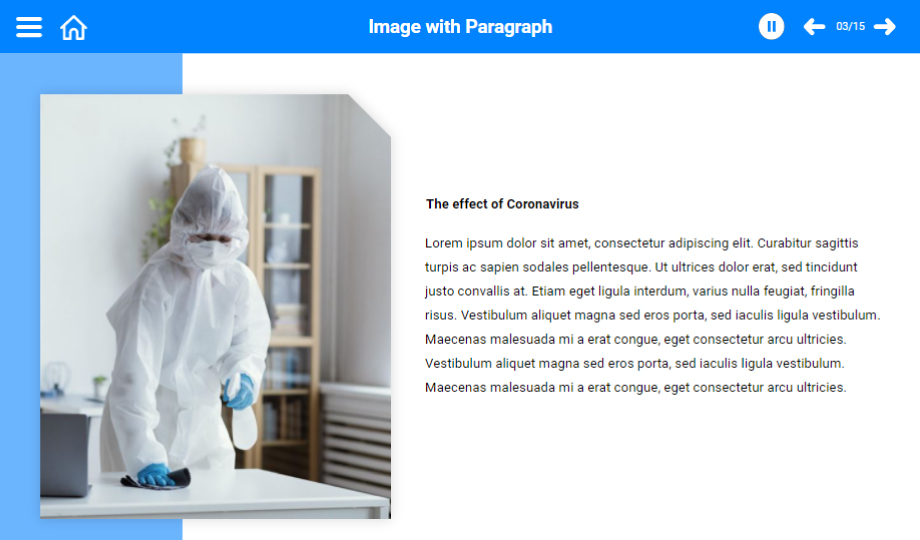 Help people understand the effect of Coronavirus and its safety measures with the help of a ready-made Coronavirus e-Learning course. This course is helpful to spread awareness among people about the virus. The course is editable. Download now!