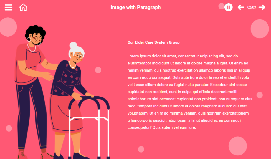 Use this ready-to-use course to highlight several old-age care groups that provide exemplary services to the elders. All the slides are editable for your convenience. All the slides are editable for your convenience.