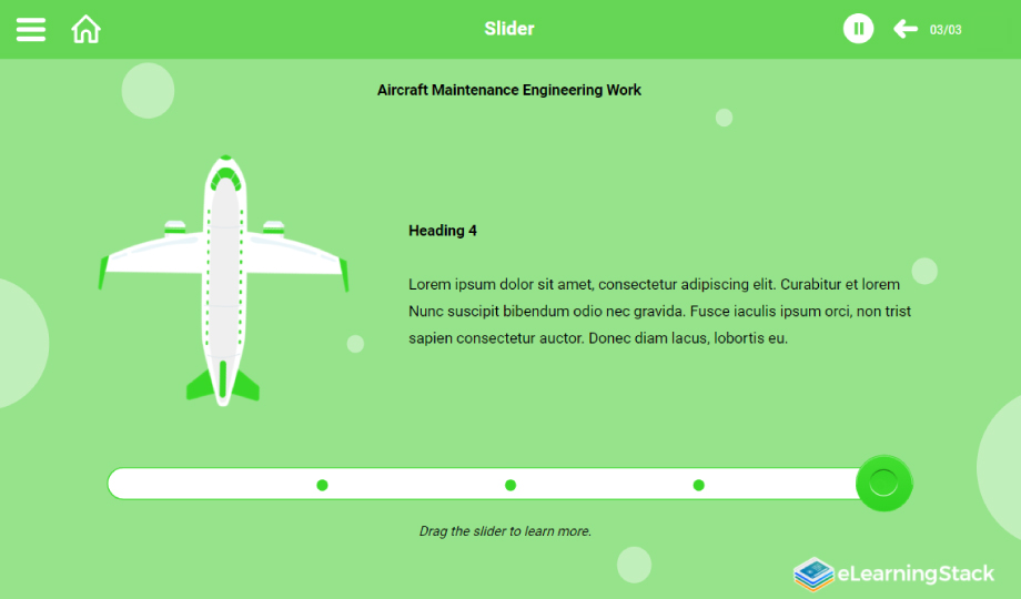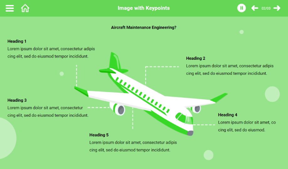Aircraft: Explain the nitty-gritty of a plane with this professionally designed aircraft course. Help your audience go through the maintenance requirements and other essential points of the aircraft using this creatively designed aircraft presentation. Grab this engaging course on the workings of a plane and use it as per your requirements.