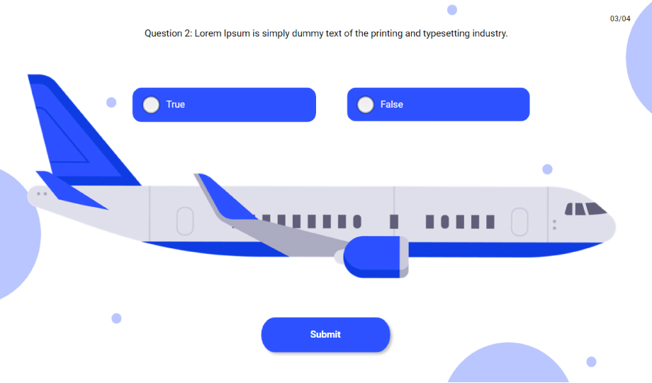 Educate your audience on the workings of a plane with the help of professionally designed quiz series slides. You can ask your audience multiple choice and true/false questions to evaluate their knowledge of aircraft. These e-templates are customizable. Download now!