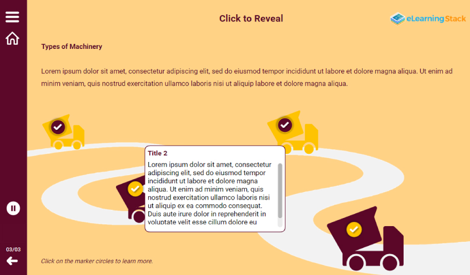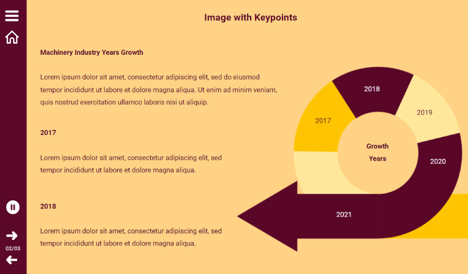 Presenting an interactive ready-to-use presentation on Machinery. After the introduction slide, there is a slide for the growth of the machinery industry over the years and the concluding slide is for types of machinery. The last slide is interactive with buttons placed in a very innovative manner. Download a captivating template today!