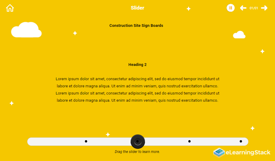 Impress your audience using a professionally designed introductory slide that comprises a graphic and space to add text. Write heading, subheading, and overview of the course using this customizable e-template. Download now!