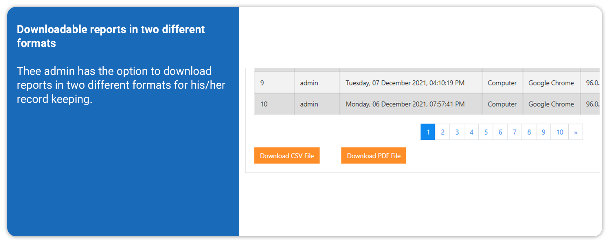 Reports downloadable in chief formats- PDF & Excel, for any time analysis